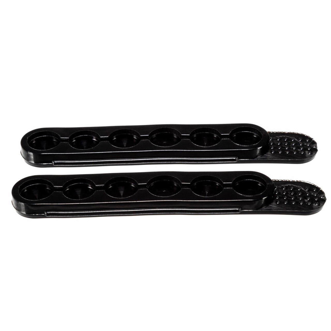 Tuff™ QuickStrips™ help to speed your reload and are proven to be the most compact and convenient way to carry and store spare ammo to reload revolvers, single shot rifles and shotguns. Injection molded from a black flexible urethane material and loads two at a time. Each Set contains 2 QuickStrips™